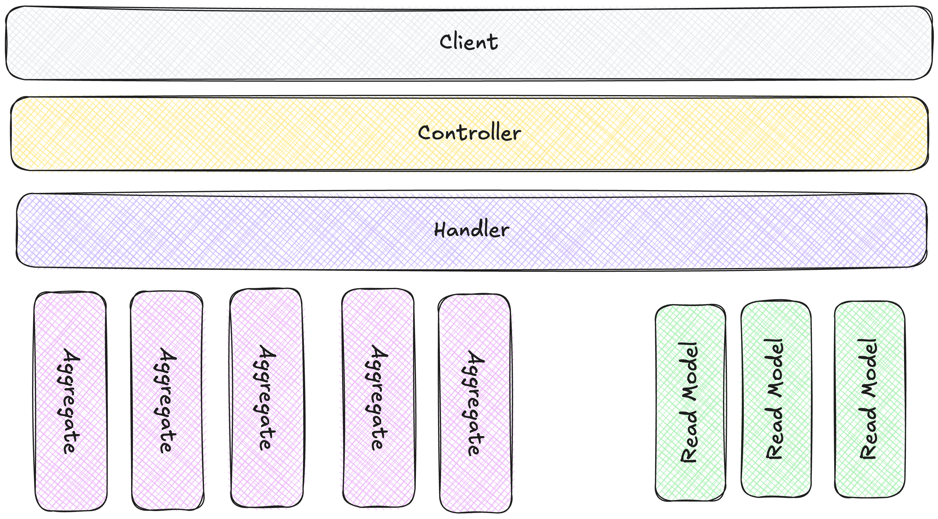 Command handlers continue to provide transaction coordination, defining the boundaries of atomic operations and ensuring that aggregate state changes are persisted consistently. But they delegate the actual business decisions to the aggregates, keeping the coordination separate from the business logic.