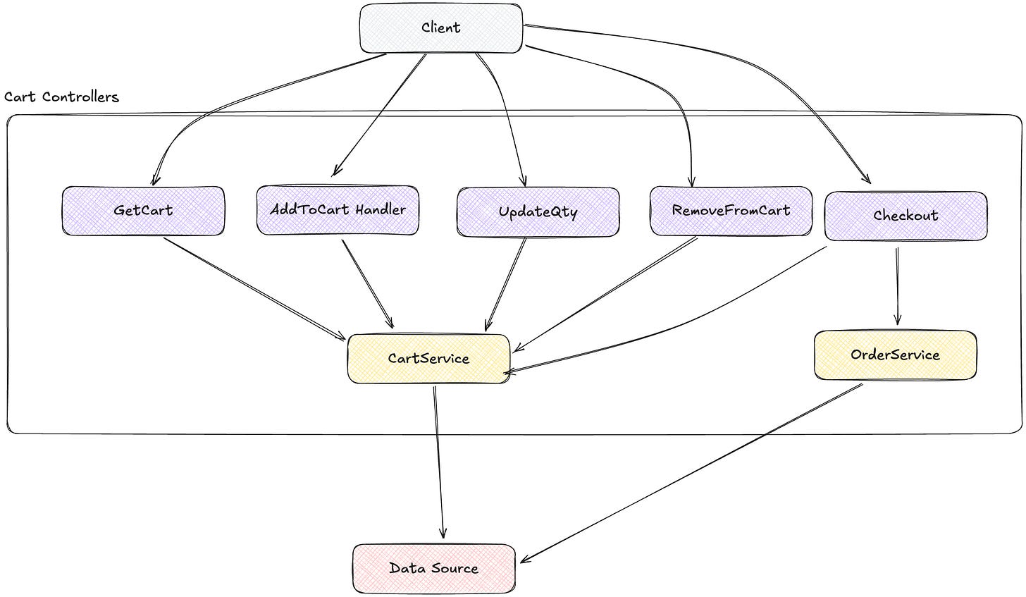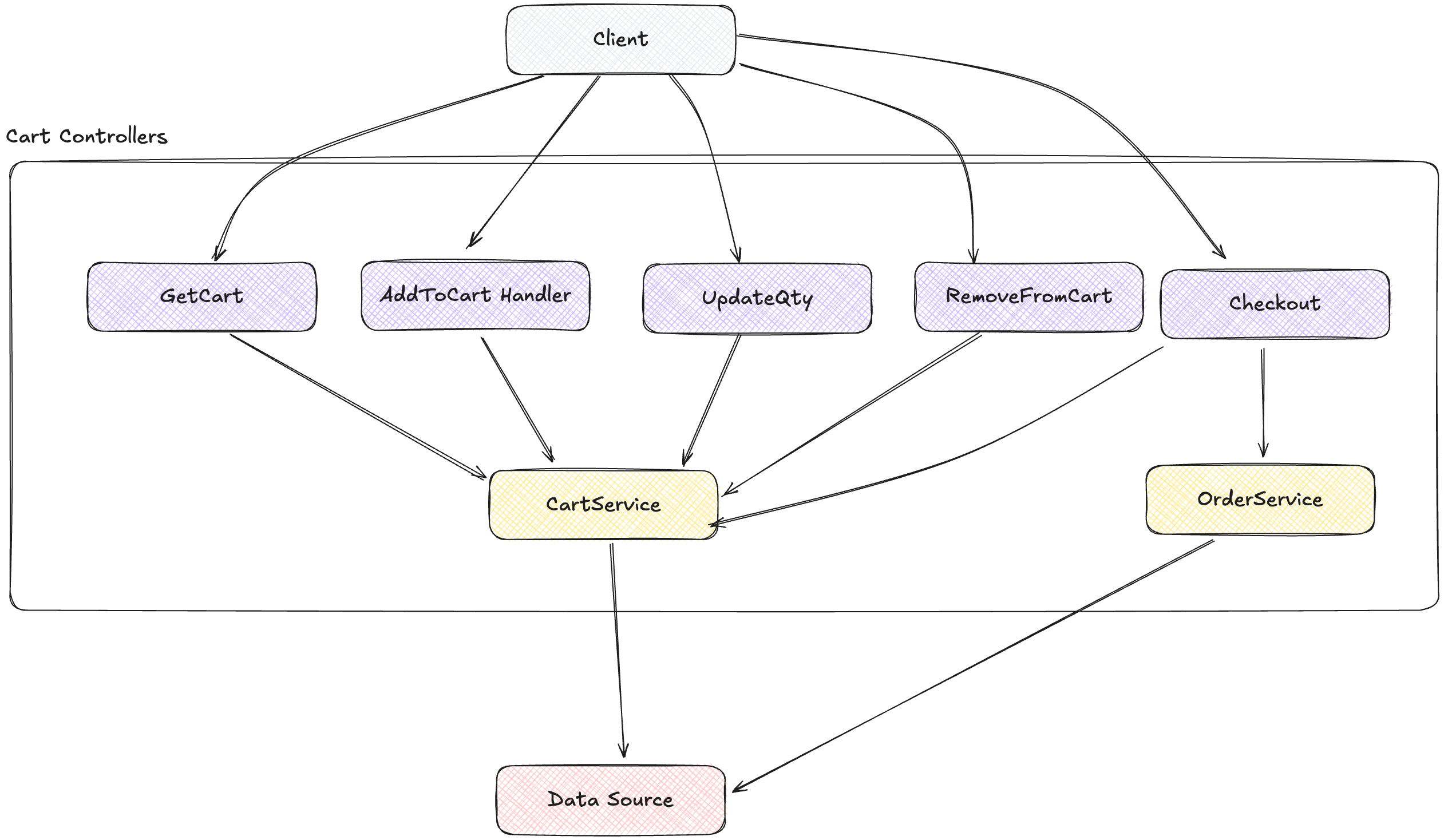 By moving business logic out of controllers into specialized services, we create a cleaner separation between orchestration and business rules. The CartController no longer needs to understand discount calculations—it simply calls the PricingService when it needs a price. This separation allows each component to be simpler and more focused on its core responsibility.